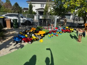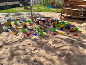 Zusätzlich dürfen wir uns noch über eine große Spende von unserem Elternbeirat freuen. Durch verschiedene Einnahmen an internen Kita Festen konnte unser Fuhrpark in diesem Jahr erneuert und aufgestockt werden. Unsere Kinder dürfen sich über neue Bobbycars, aber auch Trettraktoren–Fendt und Eicher Modelle-, große und kleine Schubkarren, Sitzbagger und Muldenkipper freuen. Zusätzlich bekommen unsere Kindergarten- und Krippenkinder neue Spielsachen für den Sand, ob Schaufel und Eimer, Sandförmchen, Sandmühlen oder auch kleine Kipper mit Anhänger, Kipplaster und Planierraupen. Hier bleibt kein Wunsch bei den Kleinen und Großen offen. Den Abschluss machen noch zwei Bollerwägen, welche für Ausflüge genutzt werden können.
