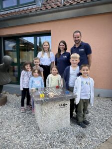 Zuerst dürfen wir uns über eine großartige Spende der Firma Grabmale Igl freuen. Im Zuge der Gewerbeschau zum 100-jährigen Jubiläum hat die Firma Igl ein großes „Mensch- ärgere-dich-nicht“ aus Stein hergestellt. Als eigenständiger Tisch auf einem großen Stein, ist in einer großen Granitplatte das Spielfeld zu dem bekannten Spiel eingraviert und gefärbt. So wie man es von dem Brettspiel kennt. Der große „Mensch-ärgere-dich-nicht Tisch“ wurde uns von Grabmale Igl gespendet, sodass unsere Kinder nun auch im Garten die Möglichkeit haben, das beliebte Brettspiel zu spielen. Das Steinspiel ziert nun unseren Vorgarten und erfüllt eine weitere Ecke des Gartens mit Möglichkeiten zum Spiel und Spaß.